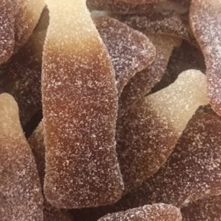 Bebeto Giant Fizzy Cola Bottles are chewy gummy treats bursting with a zingy cola taste and finished with a sour sugar coating. Shaped like traditional cola bottles. These sweets are Halal-certified.